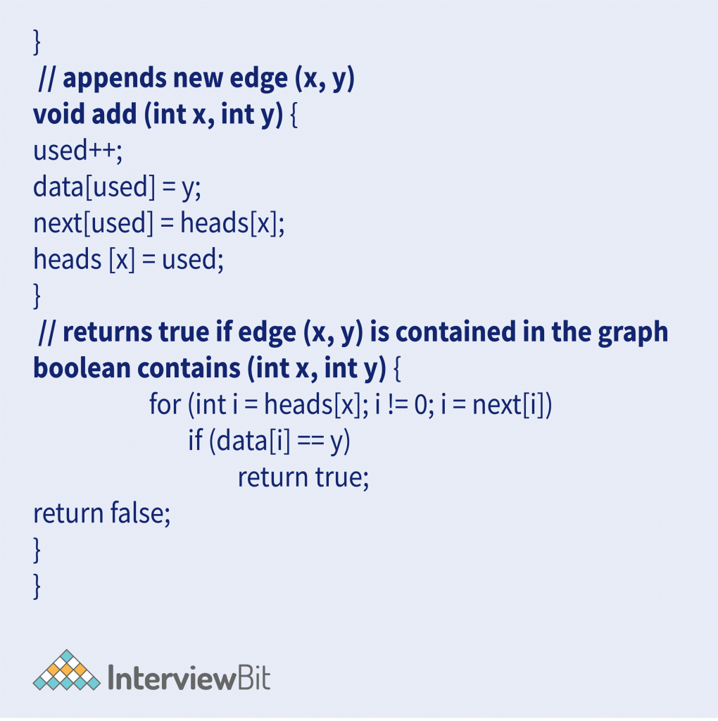 Processes with a graph depicted by an adjacency matrix are quicker. But if a graph is big we can’t make use of such an enormous matrix to depict a graph, hence we should make use of a cluster of adjacency lists, which is tighter. Utilizing adjacency lists is the most preferred option when a graph is sparse. Talking about the representation of graphs. Let’s look at the easiest implementation to depict a graph by an array of adjacency lists. The primary idea of this method is stowing a linked list of adjacent vertices for every vertex. We substitute the single integer value head with one more array (call it heads), which includes the head of the list of contiguous vertices for every vertex. Other arrays like data and next stay common for all other vertices. And another point about utilizing arrays rather than class: we ought to know what cells in arrays are free and what is employed, in our execution we describe the variable used, which includes the number of used cells and when we have to acquire a free cell we will take (used + 1). Therefore, we acquire an implementation of a data structure for depicting graphs (call it MultiList – list having multiple heads). Java code for the defined implementation: