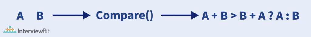 To compare the numbers A and B, we can view both of them as strings, and make them of the same length by calculating (A + B) and (B + A). Then we can just compare these 2 strings lexicographically, and sort them according to it.