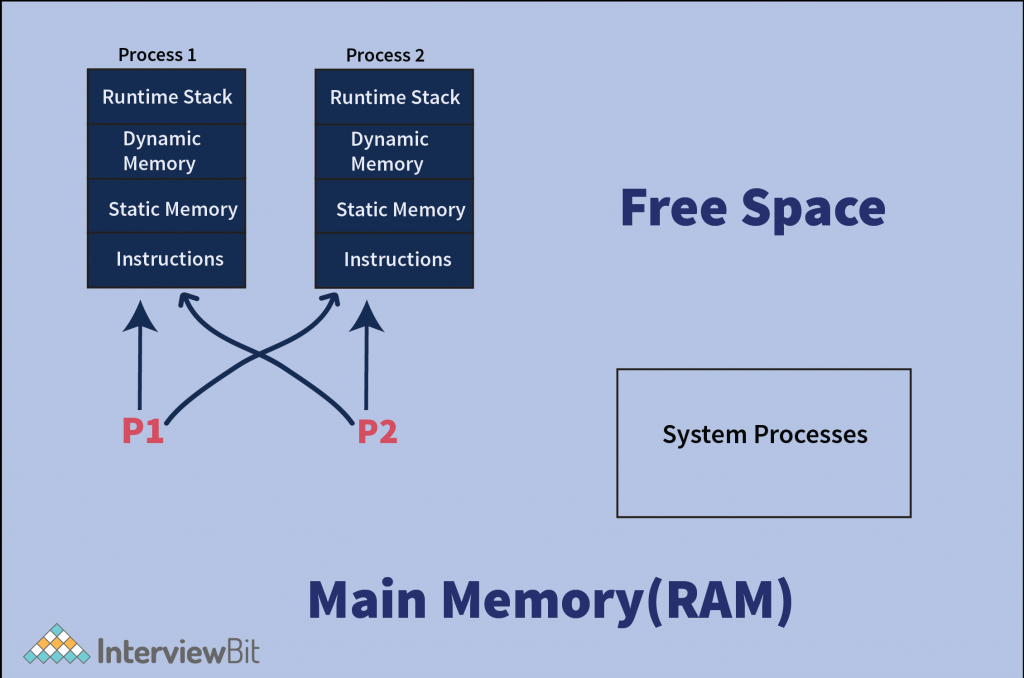 For Example – Let’s consider an example of 2 different processes that are there in the memory. And the visual representation –