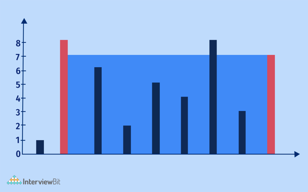 - The area would be the min(height[i], height[j]) * (j – i)