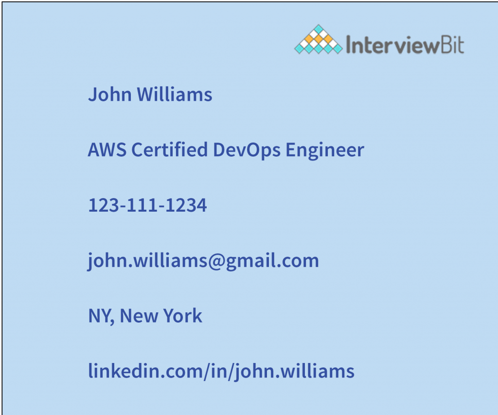 This section does not necessitate any creativity, but it does necessitate factual correctness. This area is really important; the last thing you want is an intrigued recruiter who wants to interview you but can’t reach you! As a result, before submitting your resumes, you should always double-check this part. The contact information section is the first section on your DevOps engineer resume. This includes the following: