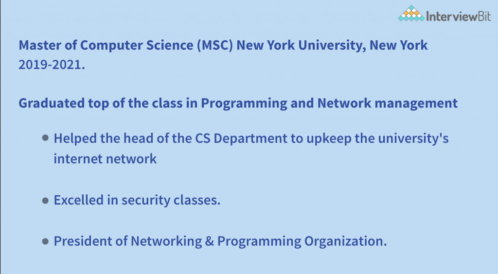 To begin, format your schooling section in the following manner: