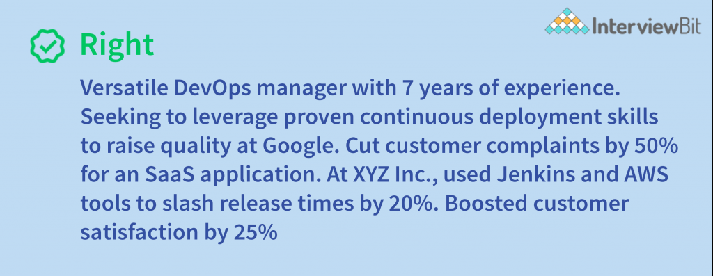 When you don’t have any experience or you are a recent graduate who’s drafting an entry-level DevOps engineer CV, a resume objective might help you express your passion.