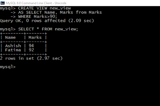 Let’s try to understand it with an example. We are going to create a view from the Marks table mentioned above.