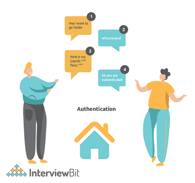 - In the above images, The person wants to enter the office then the security personnel will ask the person to authenticate himself. The person provides the User Id and password to authenticate. So this is called authentication. To check whether the person is the right person or not.