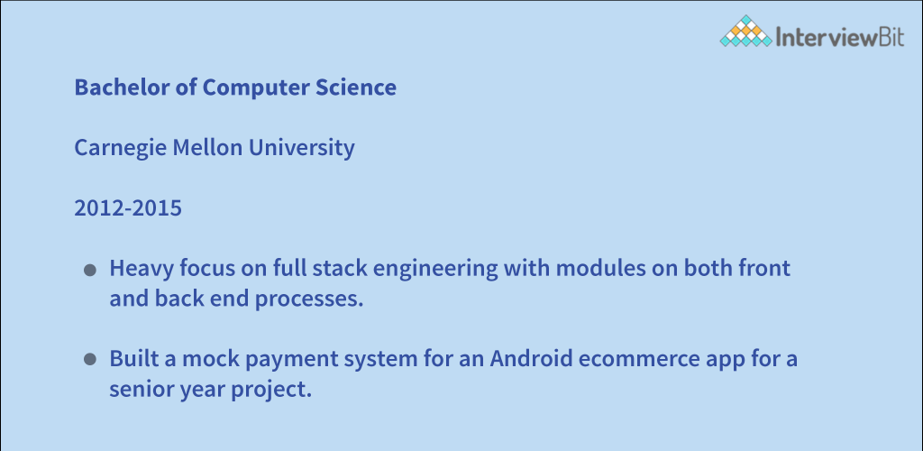 For entry-level applicants, relevant courses to the role you’re seeking for should be included. This includes any classes relevant to software engineering for software engineering roles. Have you ever taken a database class? It should be included. Have you finished an algorithm design course? Make certain it’s included in the resume. If you are a seasoned professional, you should: You can write only about your bachelor’s and master’s degrees if you don’t mention your education. The component about work experience will be the main focus.