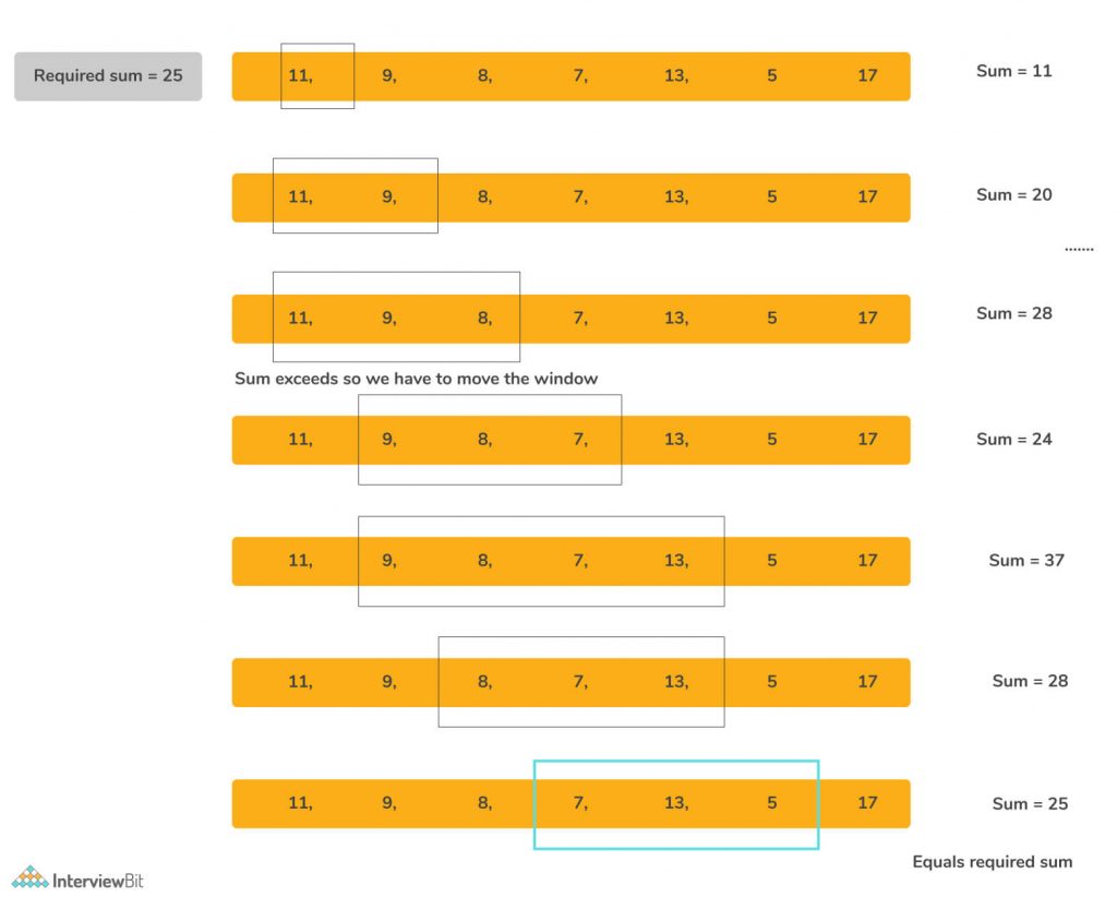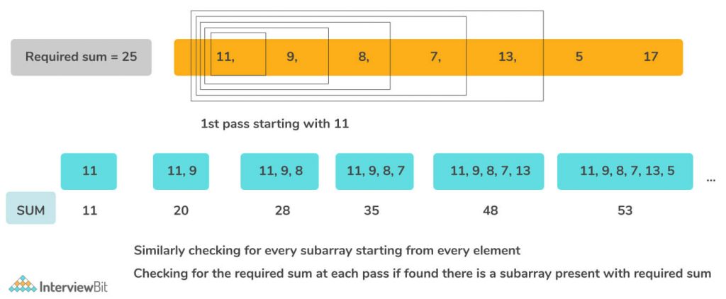 - Every time check for the sum of the elements from i to j whether it’s equal to the required sum.