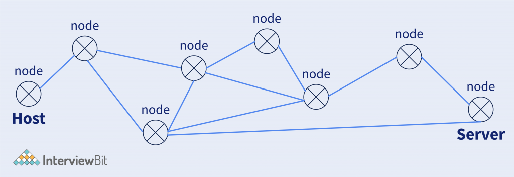 So here in the above figure, we have multiple nodes from the host to the server. So routers help to determine the path that needs to be followed so the packet reaches the destination efficiently.