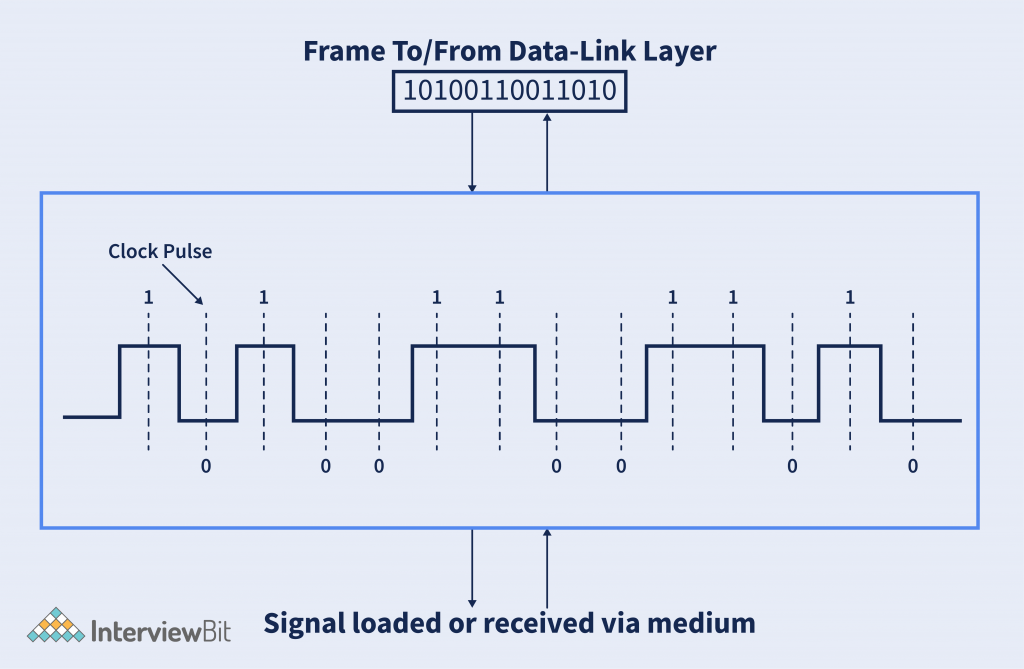 Other, on the receiver side, the physical layer accepts the electrical signal that is received, Decodes that signal and makes to a stream of bits, and sends it to the upper layer (Data Link Layer).